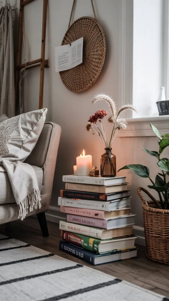 Stack your favourite books, add a candle, or place a small framed print nearby. You don’t need new decor — the key is intentional placement.