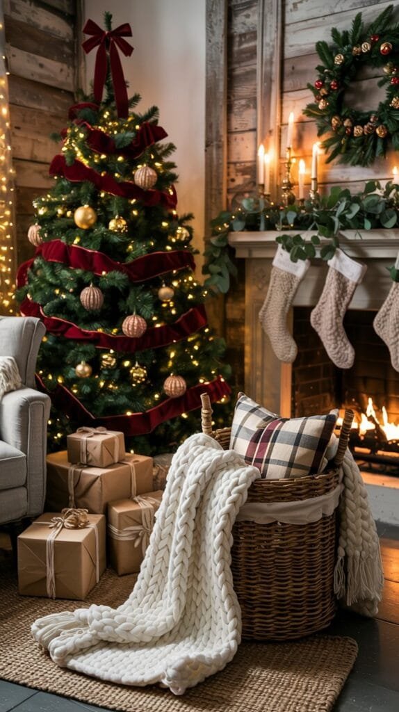 This year, it’s all about layers of texture, warmth, and glow. Think cozy Christmas living rooms that feel lived-in and loved, not staged.