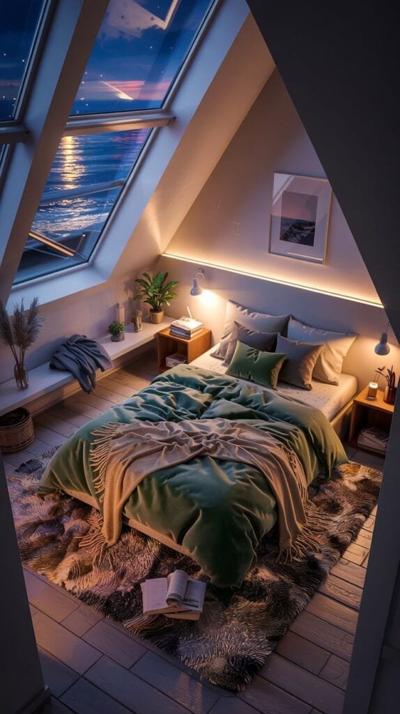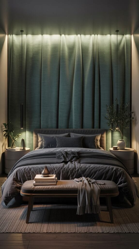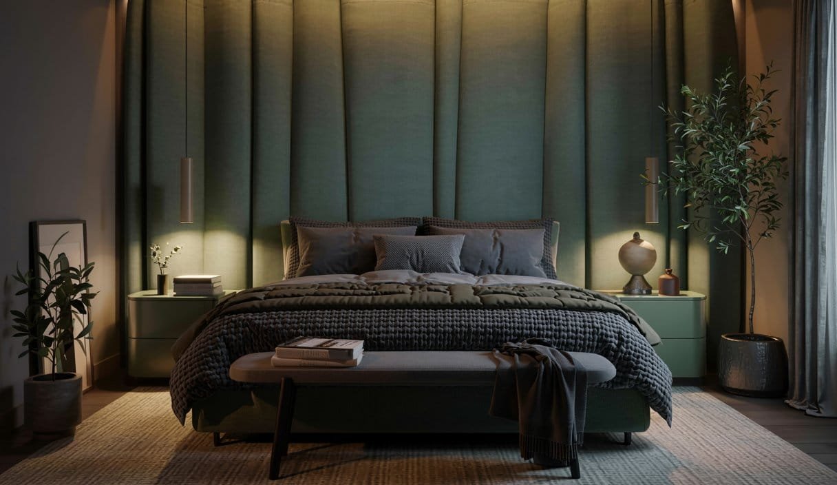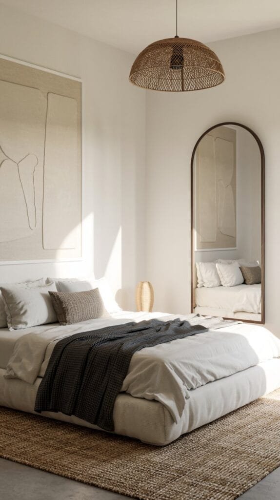 A Sage Green Bedroom instantly brings softness and serenity. Paired with warm neutrals and handcrafted ceramics, it’s the perfect expression of an Earthy Bedroom Aesthetic.