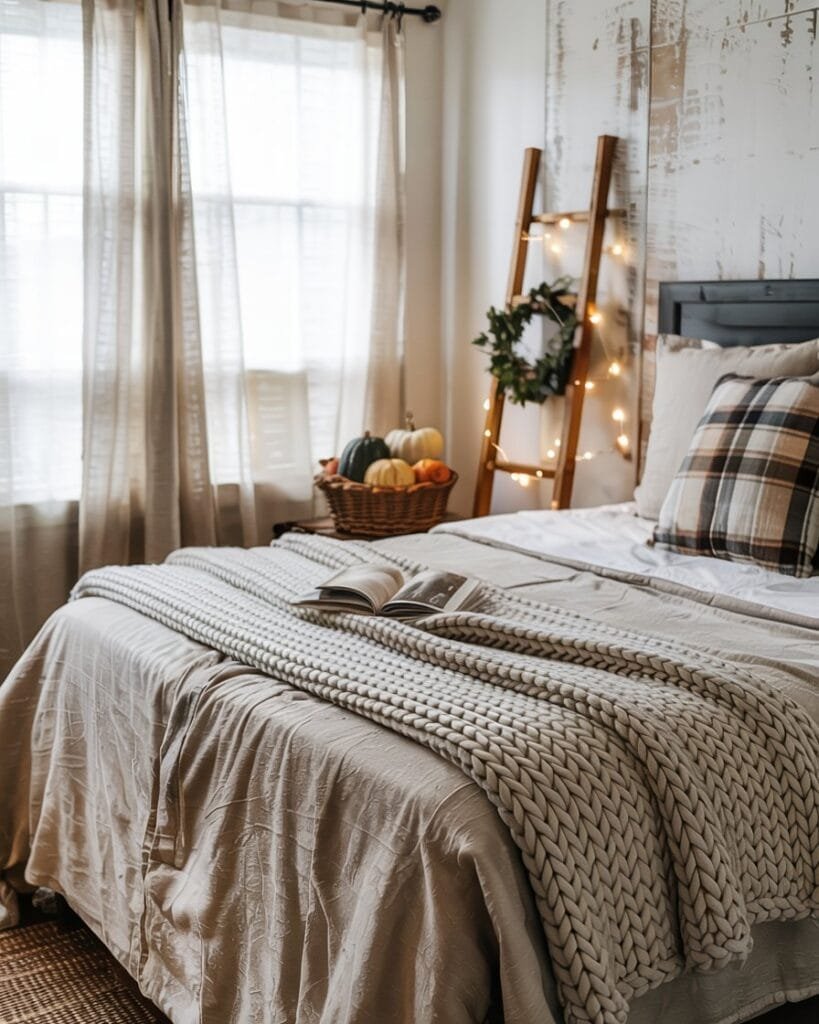 Fall is the season for layers, and your bedroom should absolutely get the memo. I like to swap out light summer bedding for warmer textures — think chunky knit throws, plaid cushions, and linen duvet covers in oatmeal or taupe shades. It instantly transforms the space without needing to repaint or redecorate.