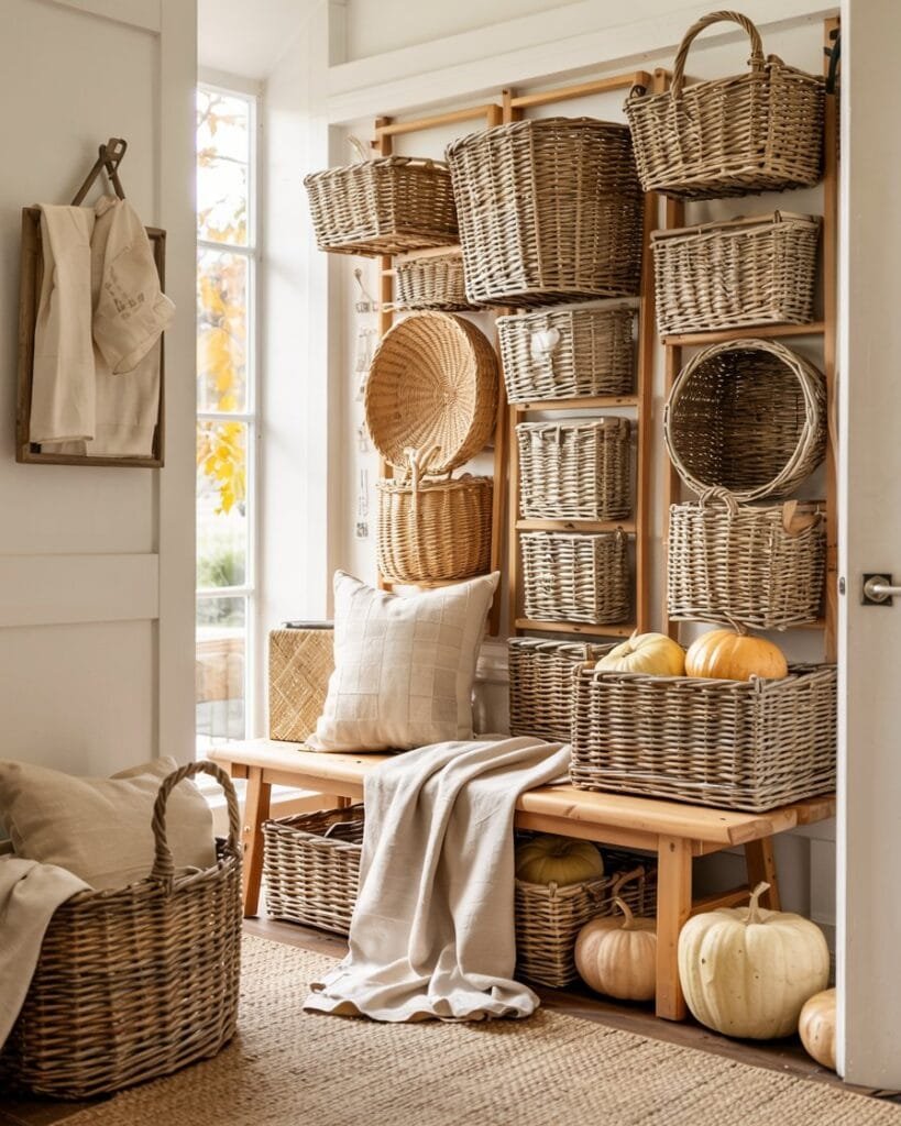 1. Basket Walls That Feel Cozy, Not Cluttered