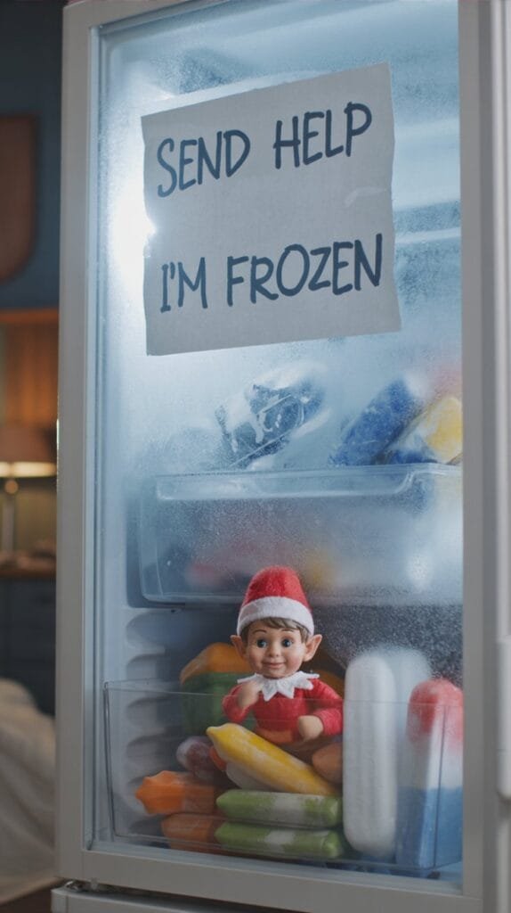 Put Elf inside the freezer with a tiny popsicle stick. Label on the glass: “Send help. I regret everything.”