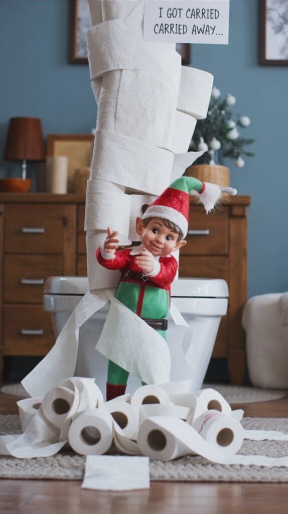 Wrap the entire bathroom in toilet paper, leaving the Elf tangled mid-roll. Add a mini sign: “I got carried away…”