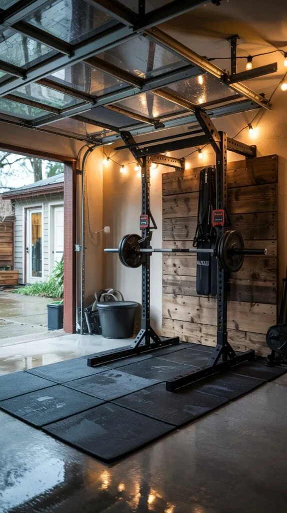 Add wood-look peel-and-stick flooring for warmth, suddenly your garage feels more boutique studio than dumping ground.