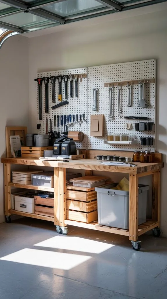 A simple rolling cart becomes your best friend here, wheel it out when you’re in project mode, tuck it back when you’re done.