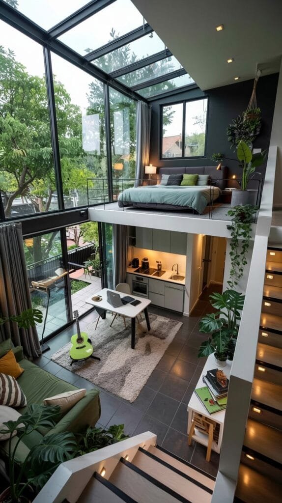 This is the mood—a modern loft that’s both intimate and open, proof that small loft apartment ideas can look incredibly high-end without trying too hard.