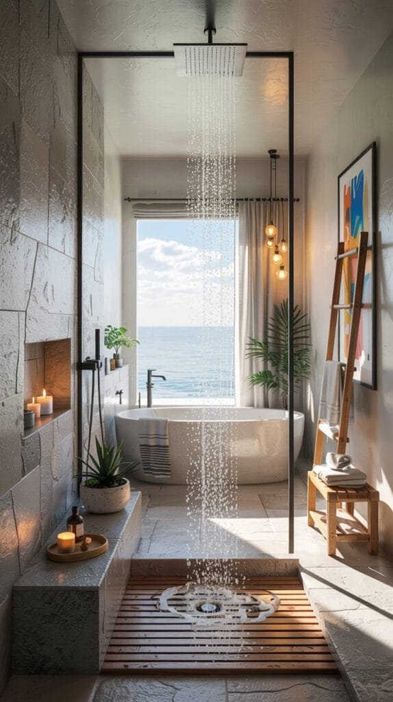 If space allows, design a shower that opens to a private terrace or courtyard.