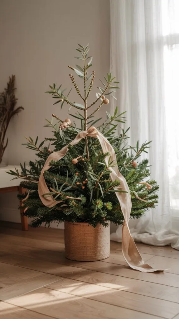 Drape it with delicate string lights or minimal white ornaments. It’s the definition of understated — and ideal for small spaces.