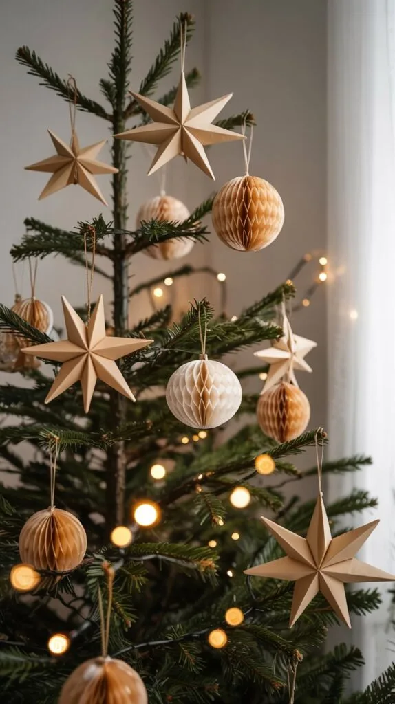 Paper decorations — especially origami or honeycomb styles — bring sculptural beauty without visual noise.
