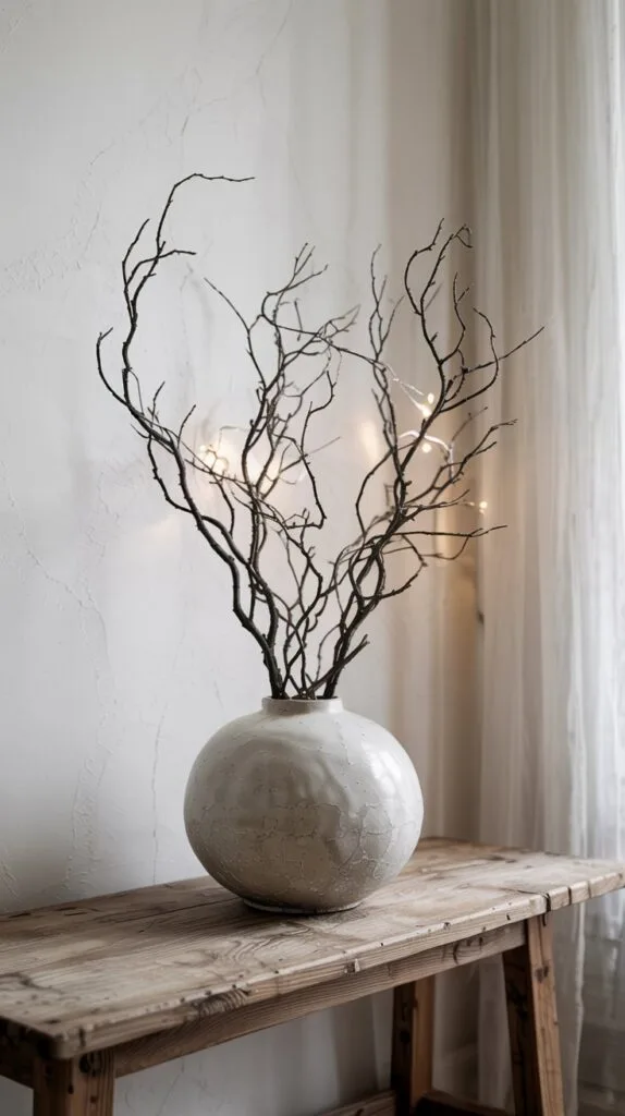Skip the full tree altogether and try a sculptural branch in a ceramic vase.