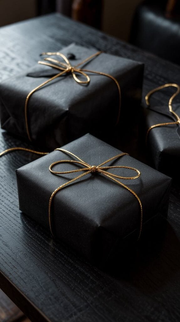 Dark, moody wrapping that makes every gift feel like it came from a boutique.