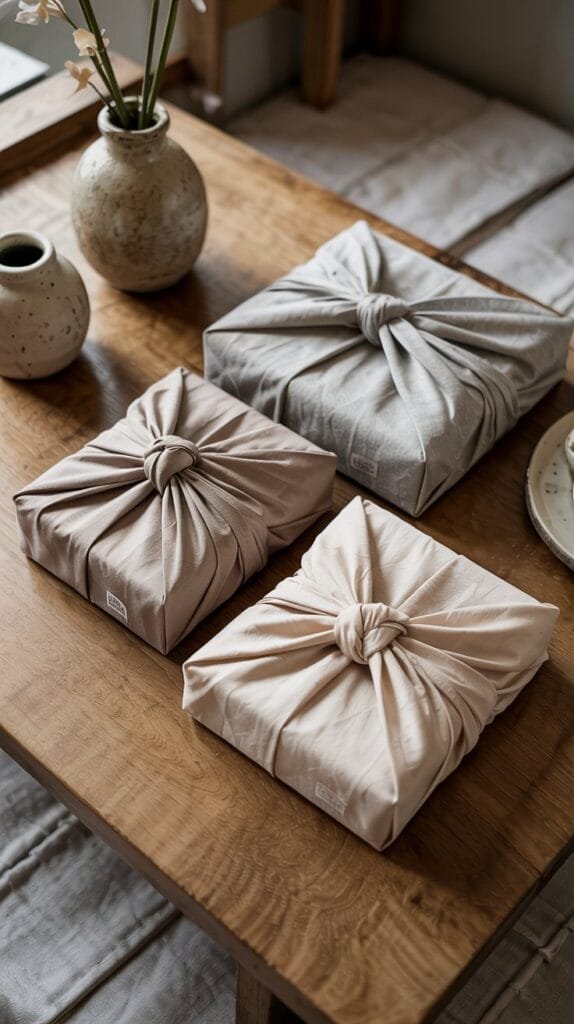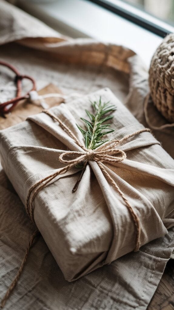 - Wrap gifts in neutral linen, muslin, or cotton napkins.