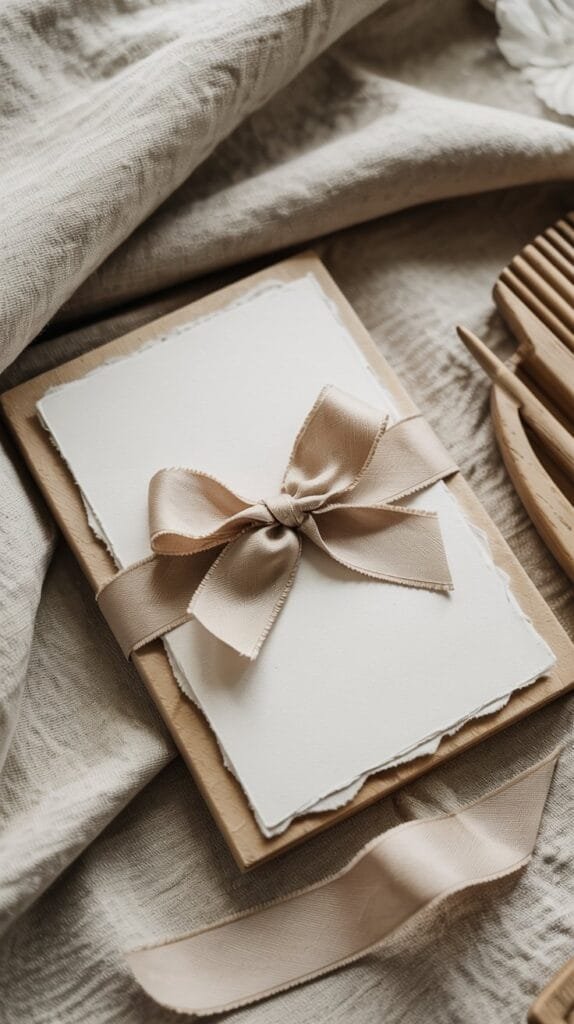 - Keep the bow minimal — one clean knot or a flat wrap-around band.