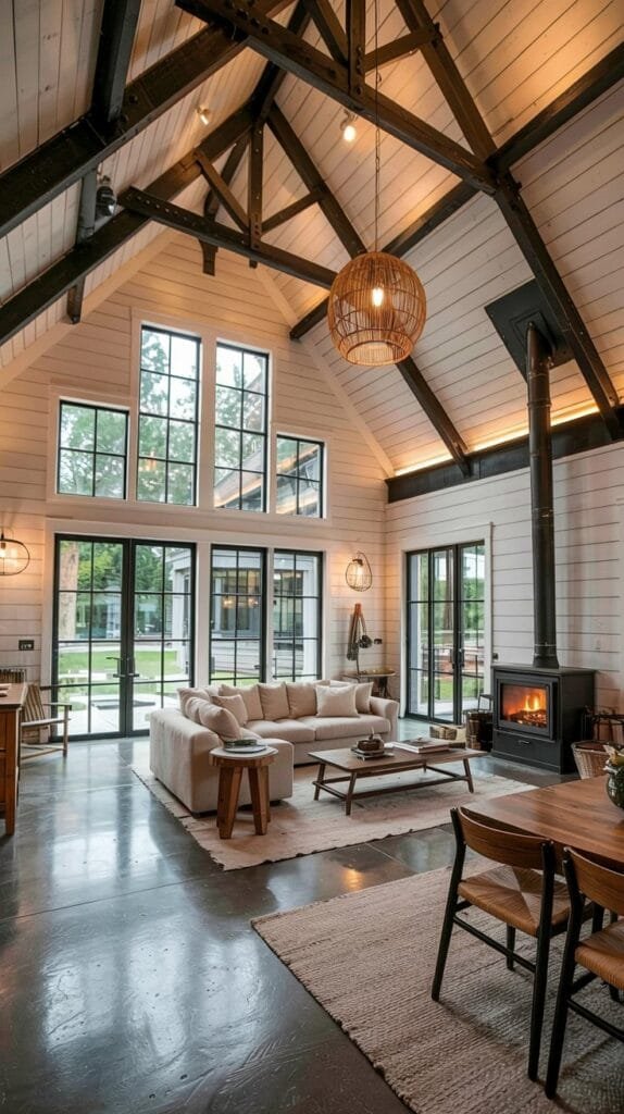 The first thing you’ll notice in a thoughtfully designed Modern Barn House is the way volume and light collide. Soaring rafters? Yes, please. But pair them with crisp white walls and matte black fixtures for a Modern Barn Interior that feels anything but old-fashioned.