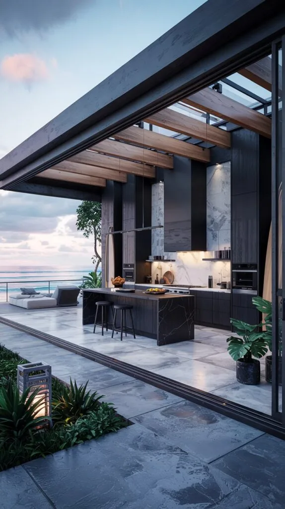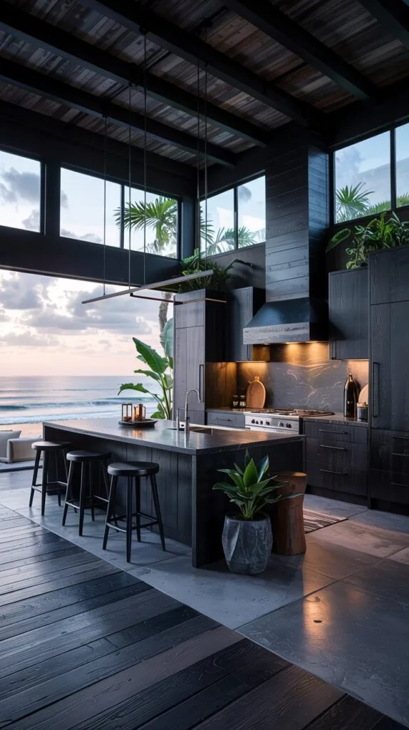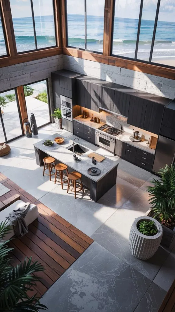 Modern beach house kitchens aren’t just for cooking; they’re for lingering. Think clean-lined cabinetry, natural stone countertops, and oversized windows that let you cook with the ocean breeze on your face.