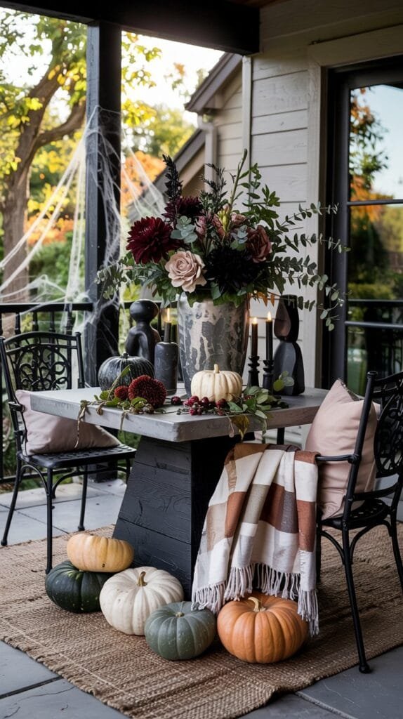 Halloween Patio with Dark Florals & Sculptural Decor