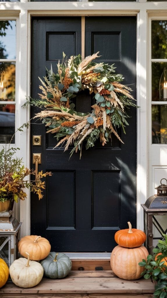 Forget the flat, cookie-cutter versions — a wreath made with wheat, eucalyptus, and dried grasses feels full of movement and warmth.