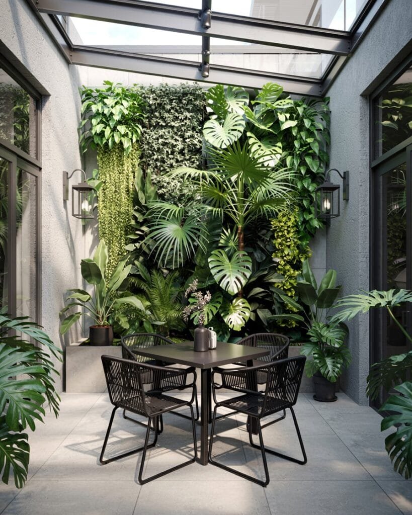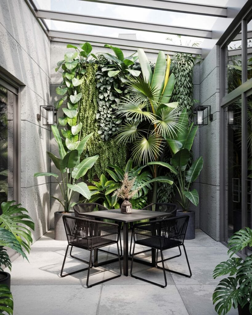 Layer your indoor patio ideas with texture: rough stone, smooth concrete, woven baskets, linen runners. The more tactile, the better.