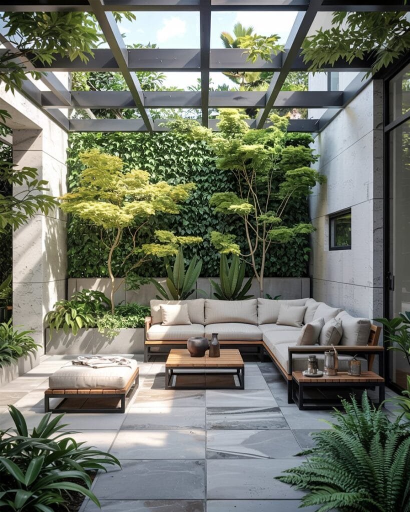 That’s the magic of the patio interior. It’s not quite indoors, not fully outdoors, which is exactly why it’s having a moment. Designers are obsessed with blurring boundaries, and Pinterest is exploding with moody courtyards, glowing terrace patios, and indoor-outdoor sanctuaries that feel cinematic.
