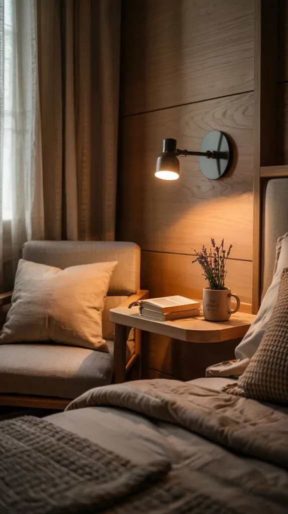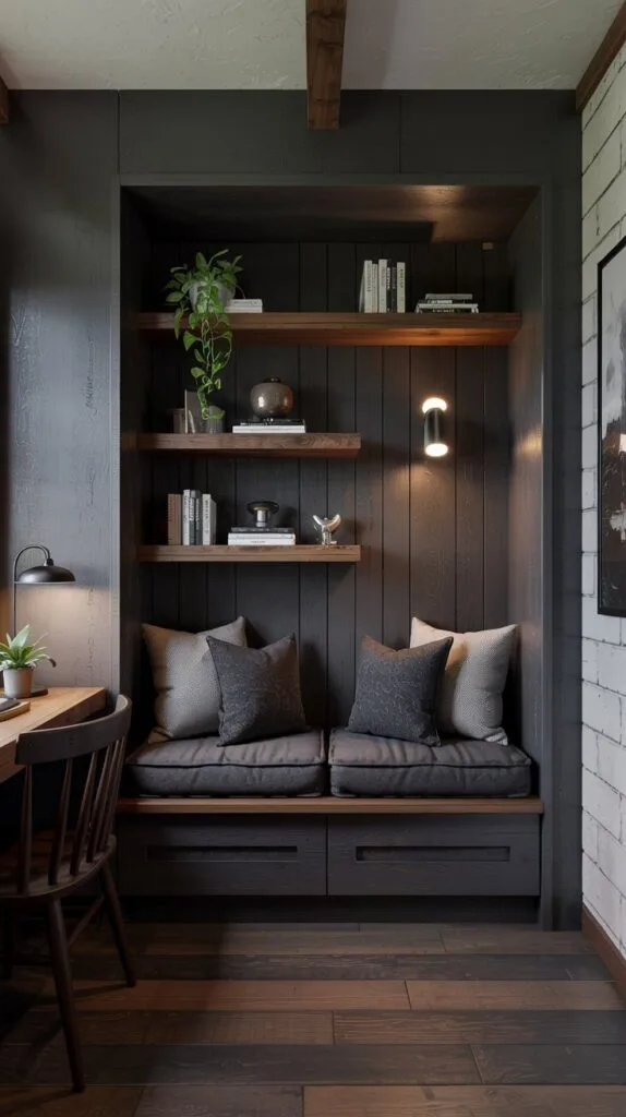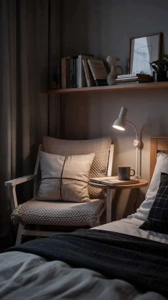 If you always read before bed (or let’s be honest—fall asleep with the book on your face), this one’s for you. Tuck a small chair or cushion into the corner with a sconce or wall light overhead. Instant book zone.