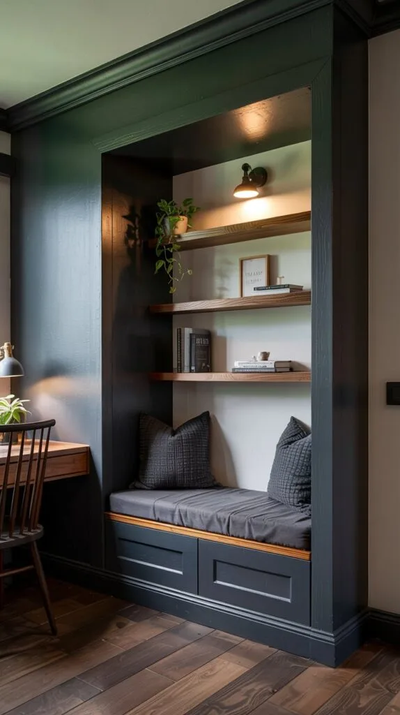 Add a built-in bench or even just a mattress pad, soft lighting, and boom—your secret escape.