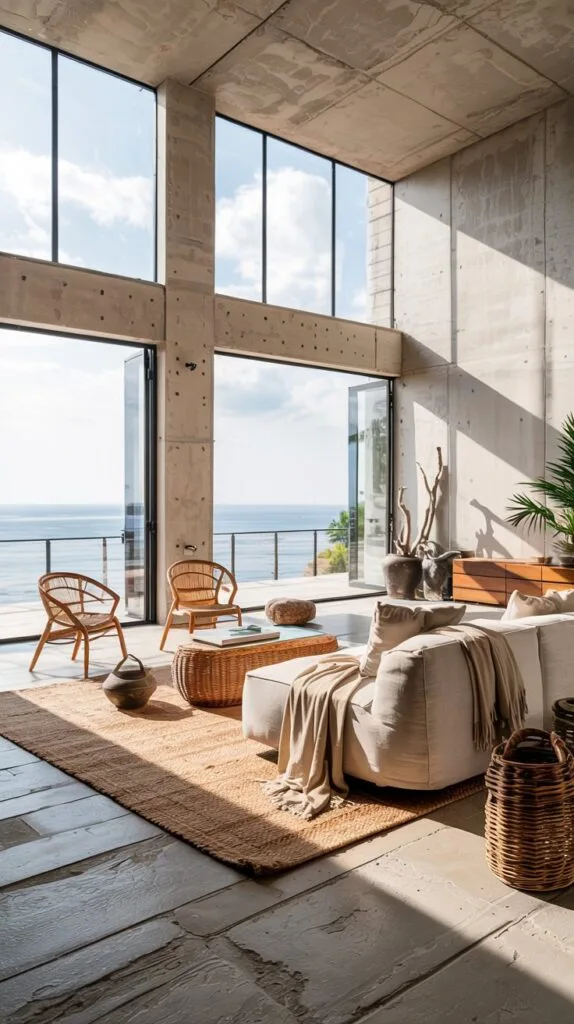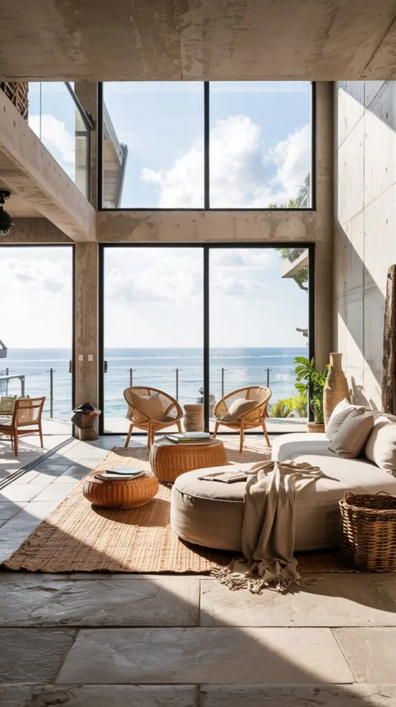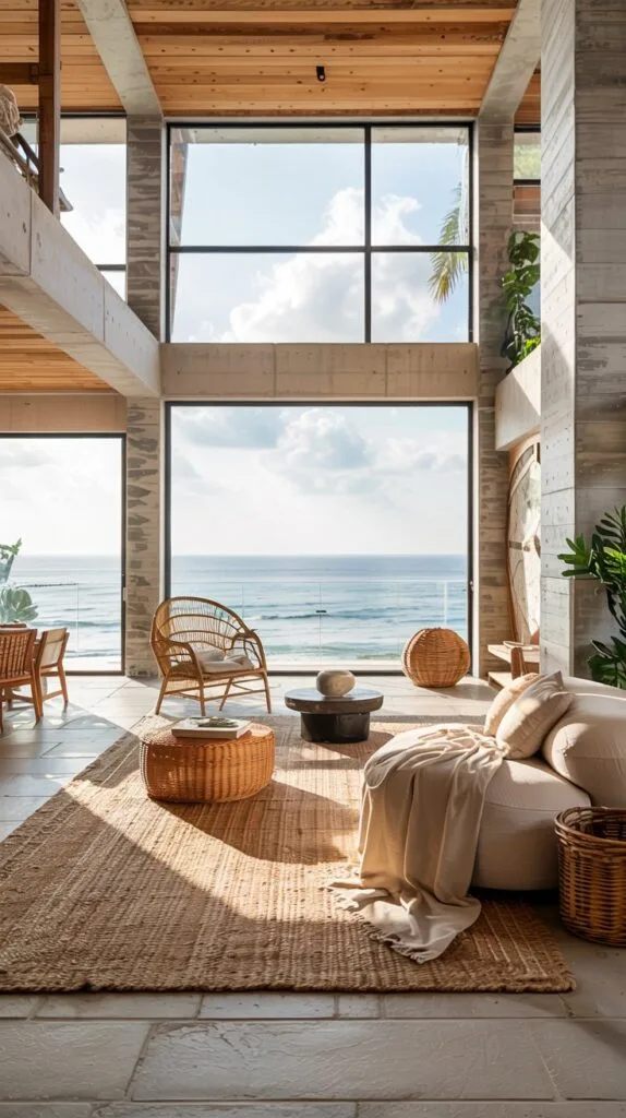Rattan, jute, and linen mimic the raw beauty of beachside living.