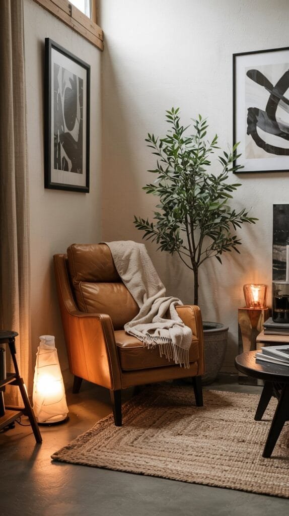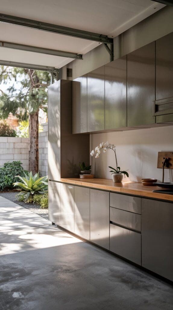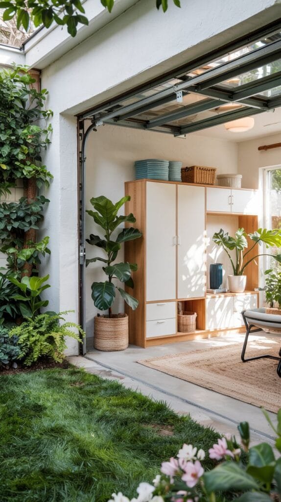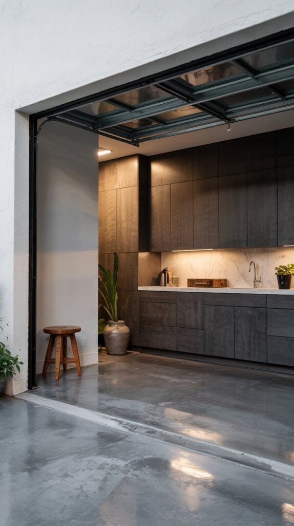 Add a compact armchair, small rug, and side table — suddenly it’s not just a garage; it’s a hangout.