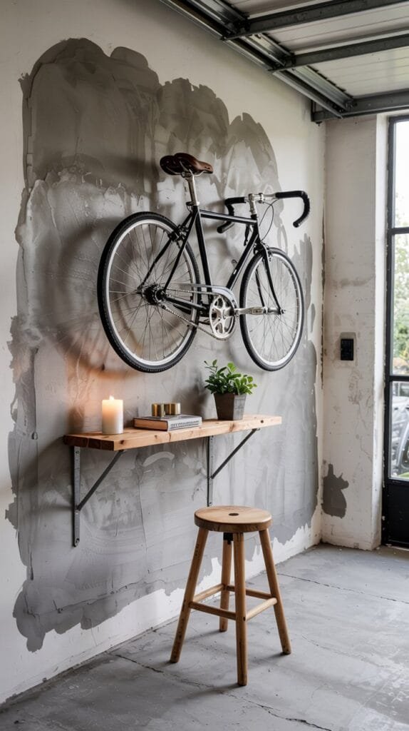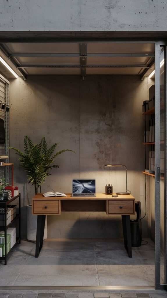 If you work or create in your garage, integrate a minimalist desk setup.