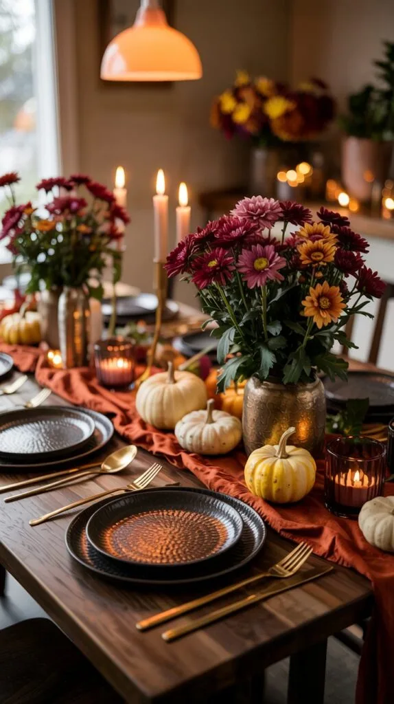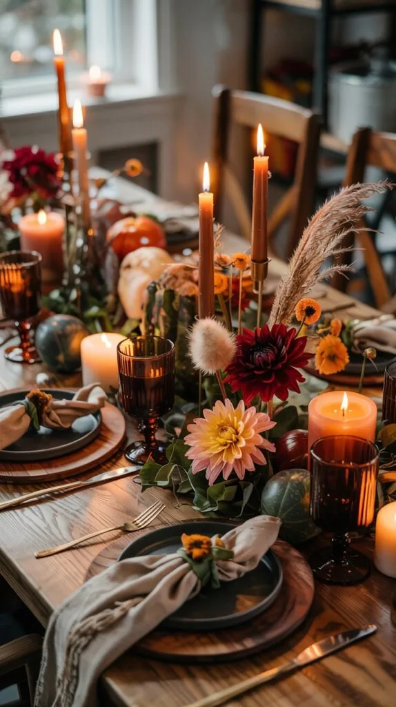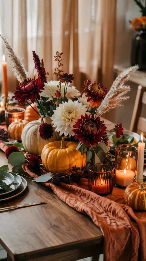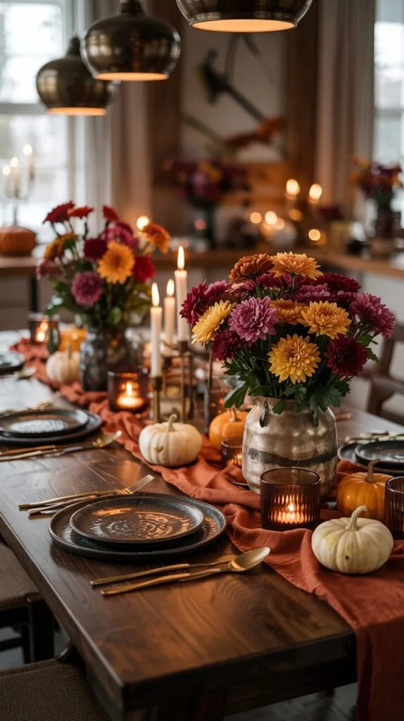 Walking into a room filled with warm amber light, the scent of spiced candles in the air, and a table crowned with a lush bouquet of autumn blooms—that’s the feeling I’m chasing this Thanksgiving.