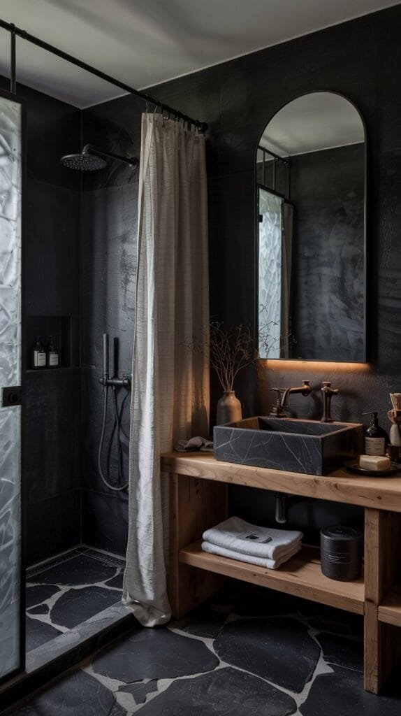Love this moody vibe? You’ll definitely want to save these modern black bathroom shower ideas and these all-black bathroom looks for your pin board.