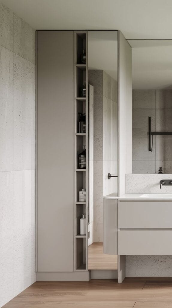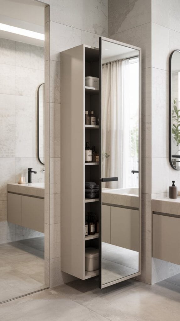 ✨ Amazon Pick: Tall, slimline storage cabinets or mirrored medicine cabinets help expand the feel of a small room.