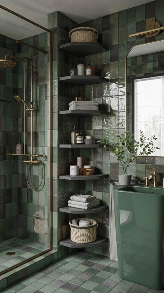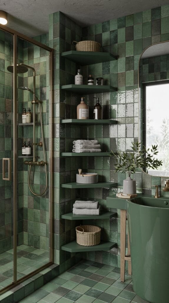 ✨ Amazon Pick: Stick-on corner shelves or no-drill shower caddies are budget-friendly and renter-approved.