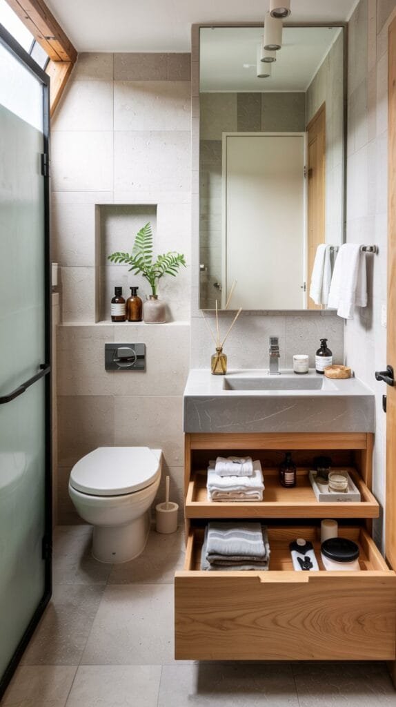 Let’s be real—tiny bathrooms are a daily design challenge. Not enough space, awkward layouts, nowhere to put anything. It’s not just about squeezing more in, it’s about making storage feel invisible, elevated, and totally functional without wrecking the vibe.